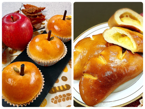 【ペア参加OK!】手作りのカスタードクリームで、人気のパンを2品作ります。フォルムが可愛いりんごパンの中には、カスタードクリームとりんごのコンポートを入れて焼き上げます。こちらのコースはお二人ひと組での参加も可能です(お二人で、お一人参加と同じ金額・作る量となります)。