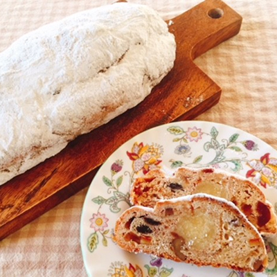 【はじめての方大歓迎♪】【ペア参加OK!】毎年大好評!ドイツの伝統的な菓子パン、シュトーレンを作ります。ナッツとドライフルーツがたっぷり入った、本格的な定番の美味しさです。真ん中に入れたマジパンが、時間の経過と共にしっとり感をアップしてくれるのも楽しみですね。こちらのコースはお二人ひと組での参加も可能です(お二人で、お一人参加と同じ金額・作る量となります)。